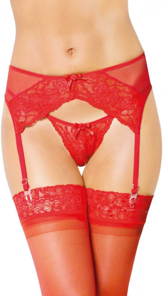 Červený podvazkový pás s tangy Lisa