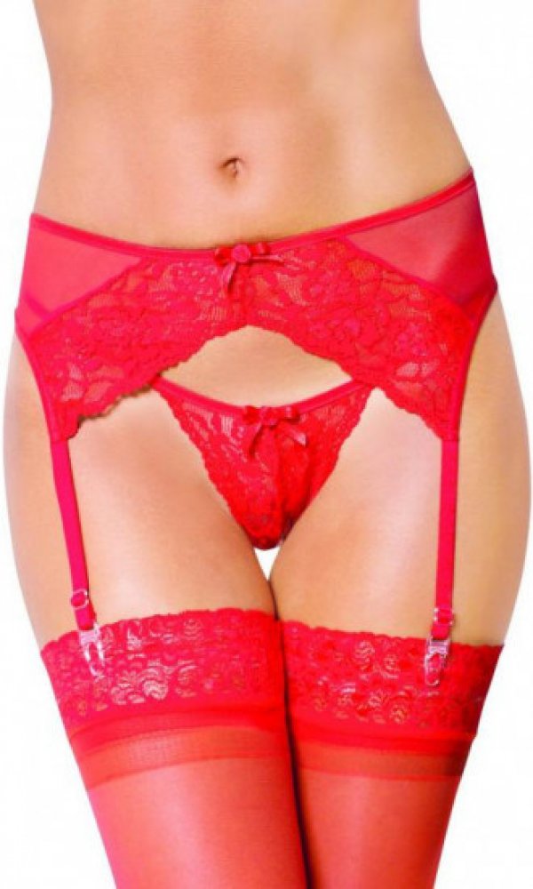 Produkt: Červený podvazkový pás s tangy Lisa, M–L