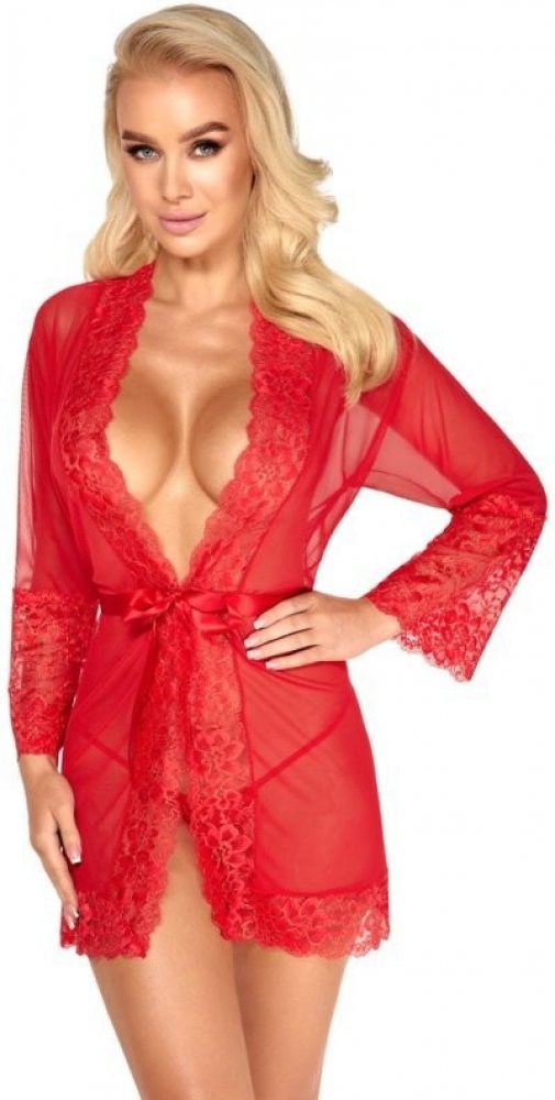 Zahalte se do jemného červeného župánku zdobeného krajkou a sundejte ho, jakmile nastane ta pravá chvíle. Tento župánek od Kissable zaujme na první pohled zlatými třpytivými detaily, které jsou součástí krajky. Je lehce průsvitný a doslova probouzí chuť, vášeň a touhu. Vychutnejte si jeho příjemný dotek na své pokožce a uvažte si přes něj saténový pásek.