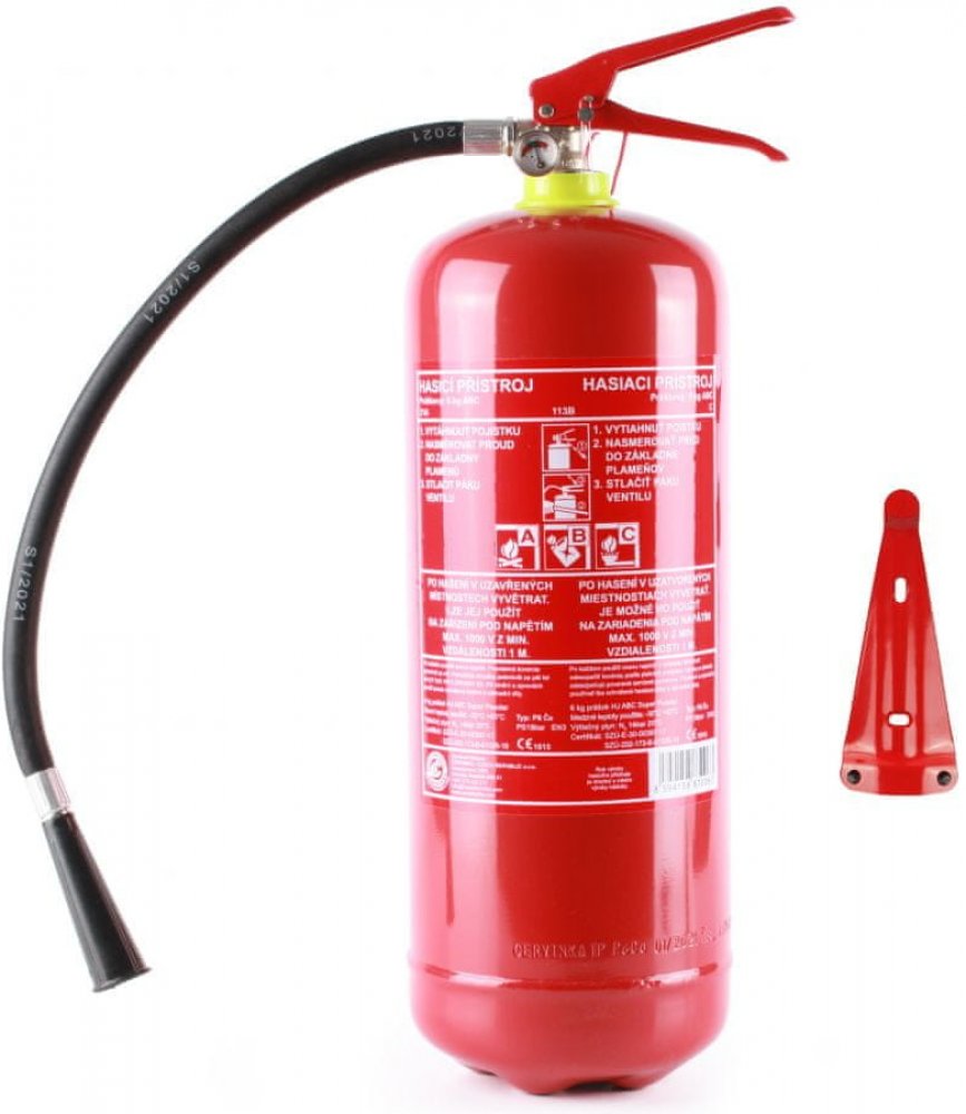 Přenosný hasicí přístroj práškový s náplní o hmotnosti 6kg, hasicí schopností 21A, 113B, C. Jedná se o univerzální hasicí přístroj, který odpovídá příslušným ustanovením vyhlášky MV č. 23/2008 Sb. o technických podmínkách požární ochrany staveb, platné od 1. července 2008.