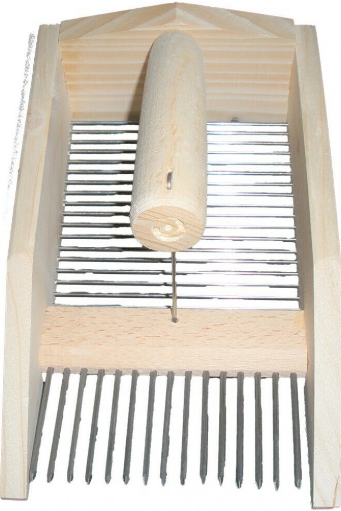 Česáček na borůvky je vyroben z tvrdého dřeva a nerezových drátků.