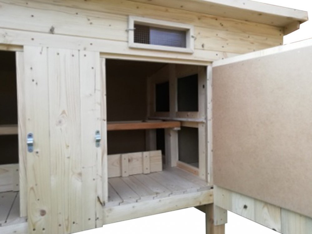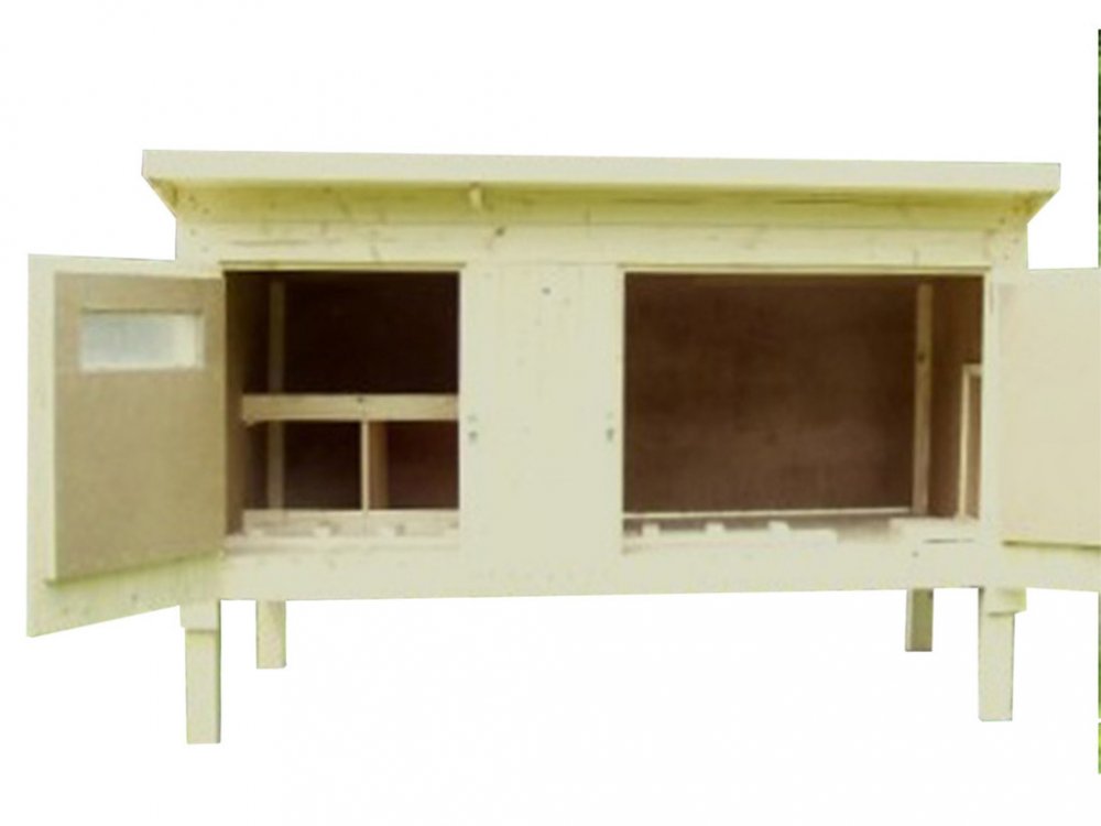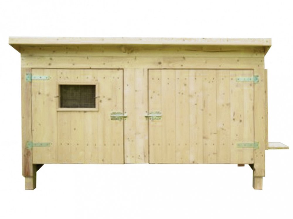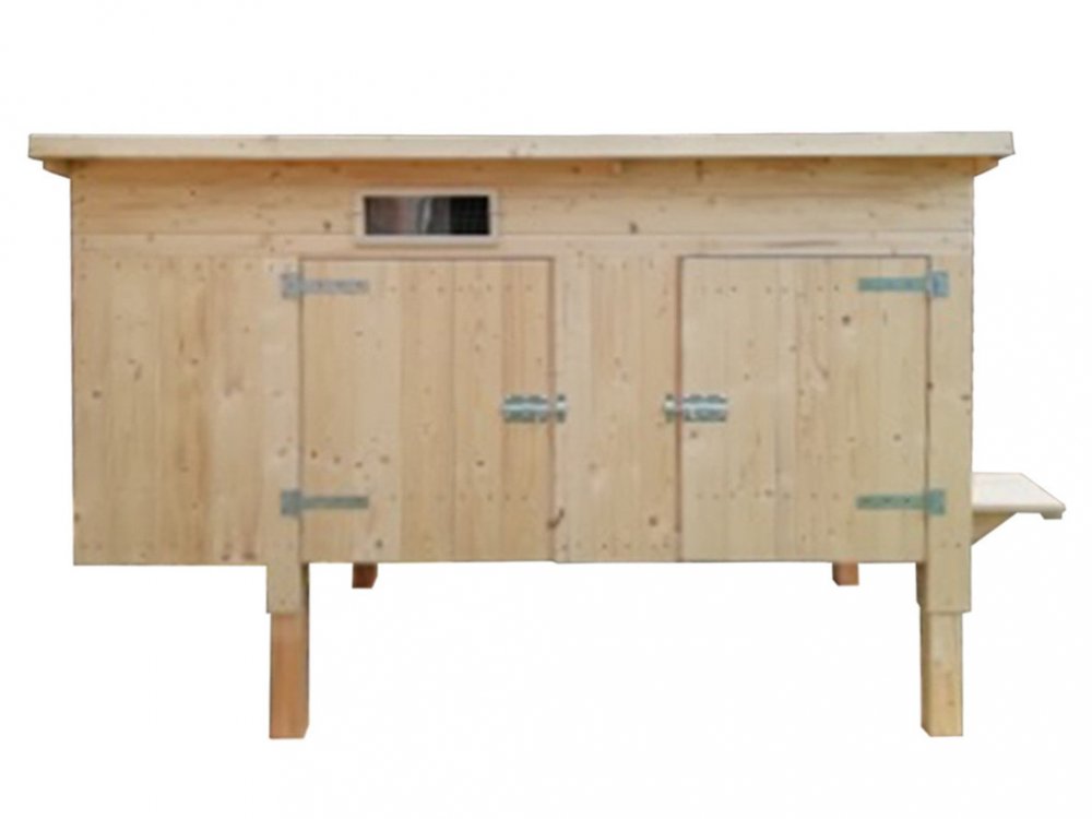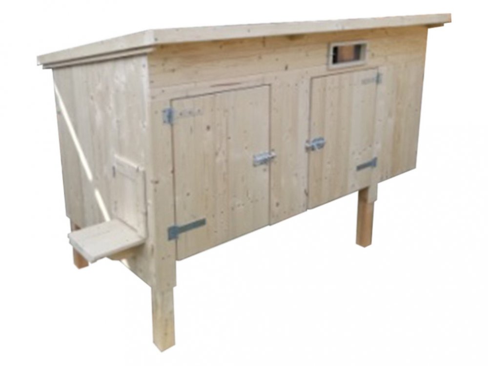 Kurník české výroby je určený pro 10 – 12 slepic. Volitelný vchod pro drůbež z levé či pravé strany a výběr vajec v levé či pravé stěně. Vyrobený z kvalitního smrkového dřeva. Interiér kurníku je vybaven dvěma kukaněmi pro snášení vajíček a dvěma hřady.