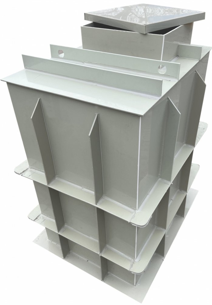 - samonosná šachta nevyžaduje obetonování ani betonový podklad. Celé stěny i strop šachty jsou vyrobeny z PP síly 8mm. Strop je vyztužen a je pochůzný