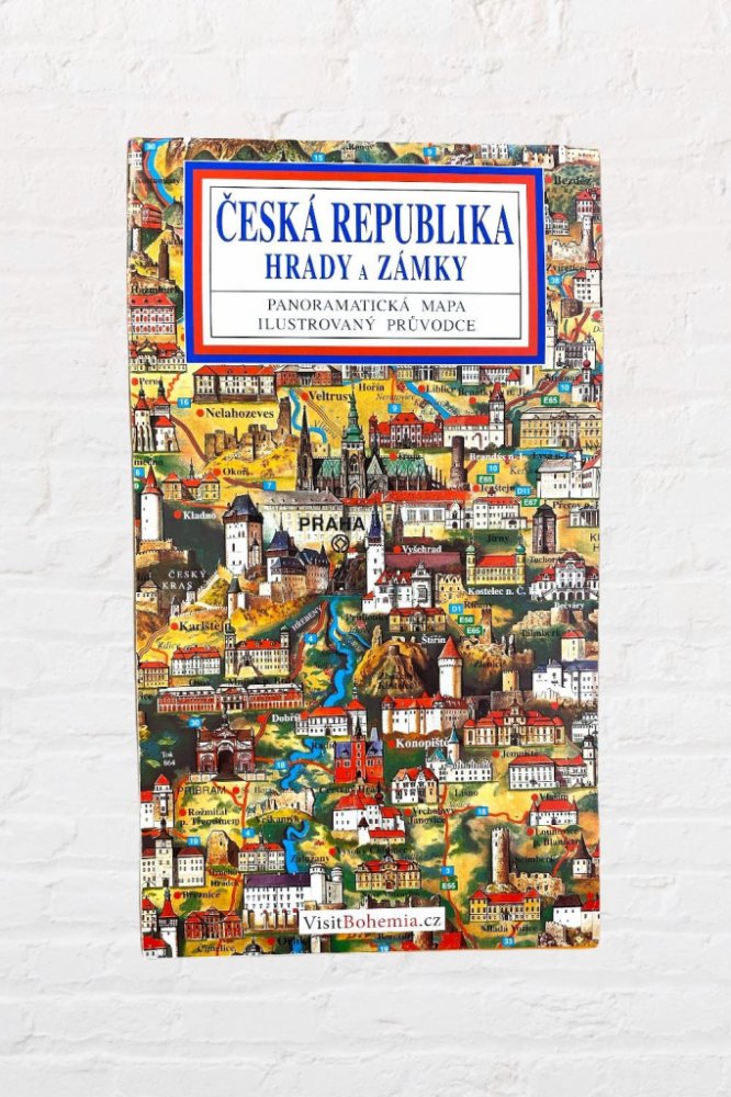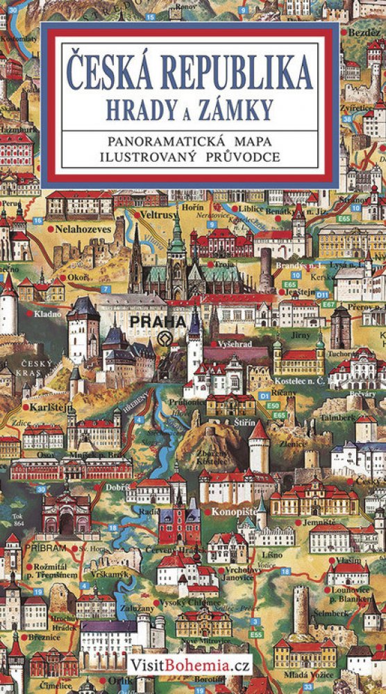 Kreslená panoramatická mapa s ilustrovaným průvodcem hrady a zámky České republiky. Mapa znázorňuje známé i méně známé hrady, zámky, zříceniny i další městské či církevní objekty doplněná erby významných majitelů uvedených šlechtických sídel. Obrazový průvodce obsahuje letecké pohledy na cca 130 nejvýznamnějších zpřístupněných objektů.