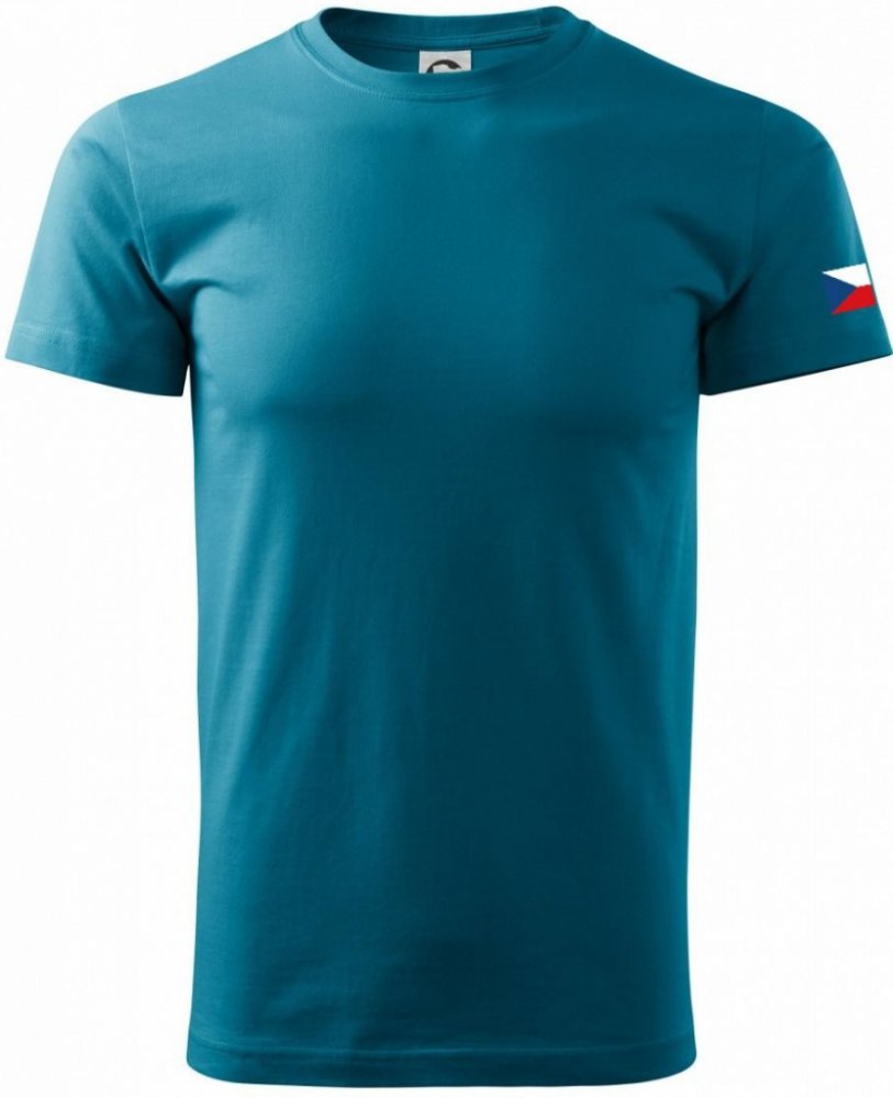 Česká vlajka na rukávu klasické pánské triko tmavý tyrkys