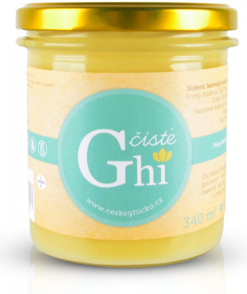 Ghí je přirozeně bezlepkový a neobsahuje laktózu. Nemusí se uskladňovat v lednici, stačí v temnu a při teplotě 0-20 °C. Případná změna konzistence není na závadu.