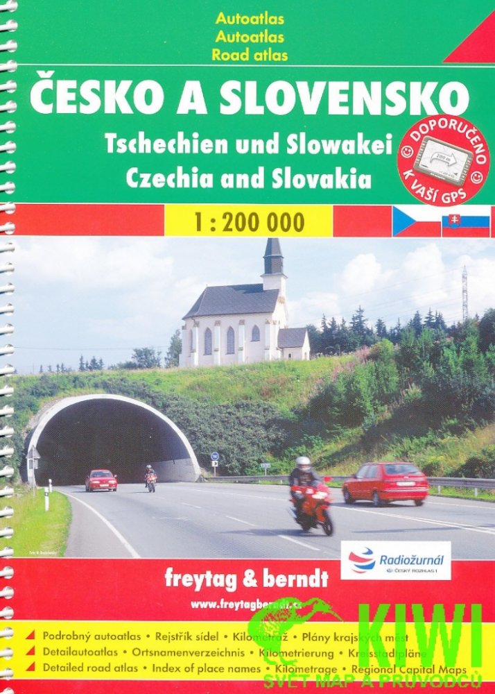 Autoatlas ?eska a Slovenska, ve formátu A4, ve spirálové vazb?, 1 : 200 000. Silni?ní sí? je ozna?ena ?ísly komunikací, dopln?na o kilometráž a symbolické znaky pro ?erpací stanice, odpo?ívadla, motely. Vedle dopravních informací jsou zazna?eny p?írodní rezervace, kulturní zajímavosti, znaky pro tábo?išt? a kempy. Výškopis je v map? zna?en pomocí stínování. Sou?ástí atlasu jsou i pr?jezdní plány vybraných m?st a samoz?ejm? rejst?ík sídel, rovinné sou?adnice UTM WGS 84, využitelné GPS. Autoatlas obsahuje také mapu vzdáleností, mapu kraj? a mapu dálnic a rychlostních silnic s podkladem. Vydáno 2013, 84 + 48 stran. (anotace knihkupectví mapkupectví KIWI).