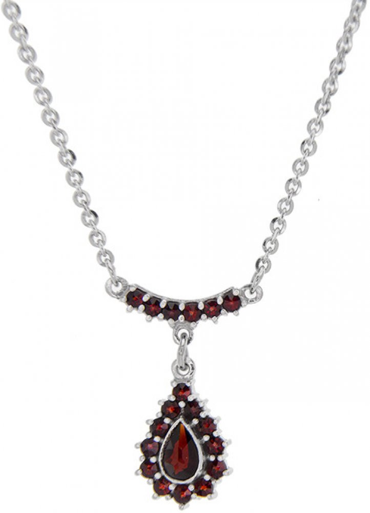 Stříbrný náhrdelník osazený pravými českými granáty. Ke každému šperku přikládáme certifikát pravosti a dárkovou krabičku. Český granát pochází z nalezišť Podsedice a Dolní Olešnice. Český výrobek s nezaměnitelným charakterem. V jednoduchosti je krása. Toto dokonale platí pro elegantní šperky z pravého českého granátu.