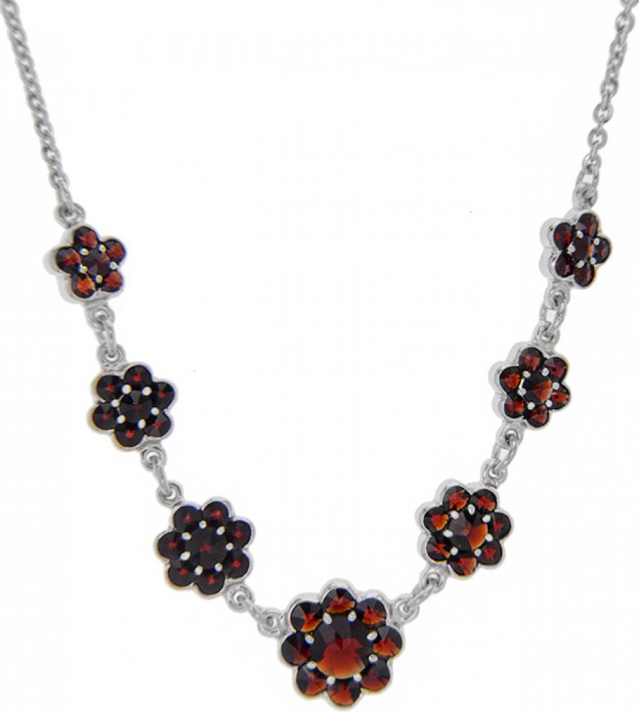 Stříbrný náhrdelník osazený pravými českými granáty. Ke každému šperku přikládáme certifikát pravosti a dárkovou krabičku. Český granát pochází z nalezišť Podsedice a Dolní Olešnice. Český výrobek s nezaměnitelným charakterem. V jednoduchosti je krása. Toto dokonale platí pro elegantní šperky z pravého českého granátu.