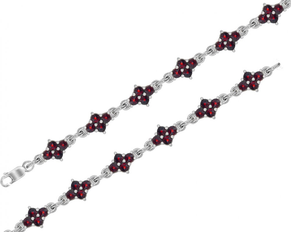 Stříbrný náramek osazený pravými českými granáty. Ke každému šperku přikládáme certifikát pravosti a dárkovou krabičku. Český granát pochází z nalezišť Podsedice a Dolní Olešnice. Český výrobek s nezaměnitelným charakterem. V jednoduchosti je krása. Toto dokonale platí pro elegantní šperky z pravého českého granátu.