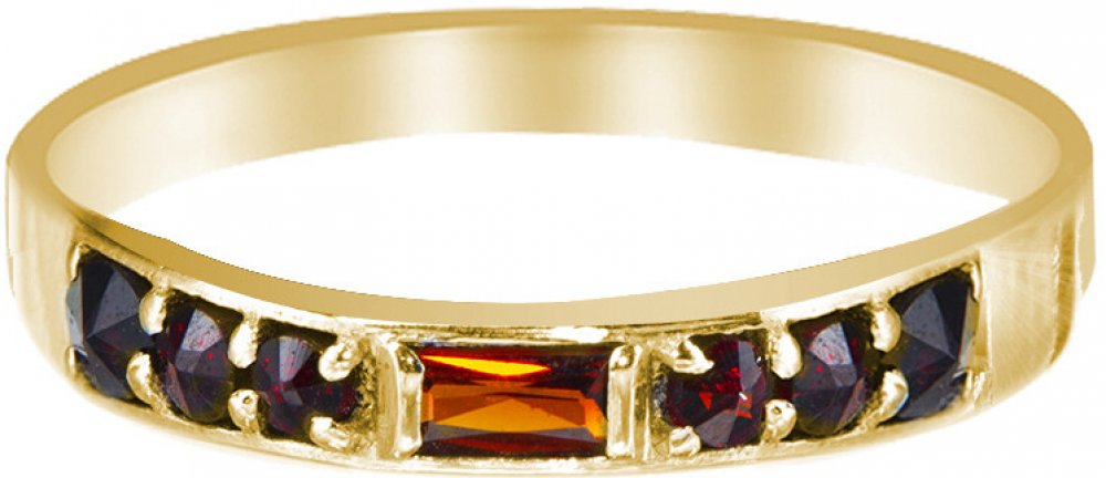 Pozlacený stříbrný prsten osazený pravými českými granáty. Ke každému šperku přikládáme certifikát pravosti a dárkovou krabičku. Český granát pochází z nalezišť Podsedice a Dolní Olešnice. Český výrobek s nezaměnitelným charakterem. V jednoduchosti je krása. Toto dokonale platí pro elegantní šperky z pravého českého granátu.