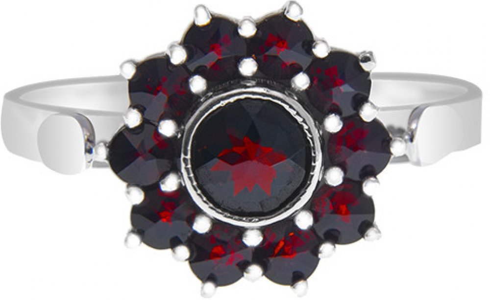 Stříbrný prsten osazený pravými českými granáty. Ke každému šperku přikládáme certifikát pravosti a dárkovou krabičku. Český granát pochází z nalezišť Podsedice a Dolní Olešnice. Český výrobek s nezaměnitelným charakterem. V jednoduchosti je krása. Toto dokonale platí pro elegantní šperky z pravého českého granátu.