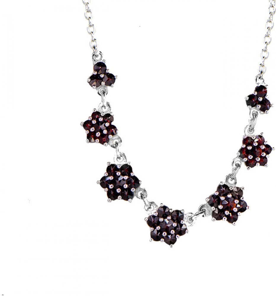 Stříbrný náhrdelník osazený pravými českými granáty. Ke každému šperku přikládáme certifikát pravosti a dárkovou krabičku. Český granát pochází z nalezišť Podsedice a Dolní Olešnice. Český výrobek s nezaměnitelným charakterem. V jednoduchosti je krása. Toto dokonale platí pro elegantní šperky z pravého českého granátu.