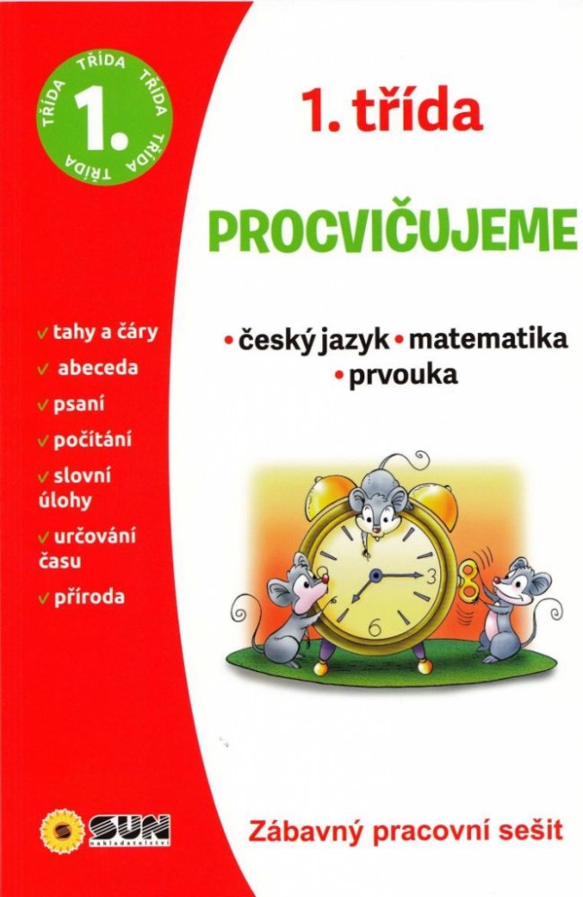 Publikace: Český jazyk, Matematika, Prvouka - 1. třída - neuveden. Procvičování je určeno všem žákům prvních tříd, kteří by si rádi zopakovali učivo z matematiky, českého jazyka a prvouky. Knížku je možné využít jako každodenního společníka při psaní domácích úkolů a procvičování znalostí, jež děti právě získaly ve škole, ale také třeba jako soubor cvičení na prázdniny. Najdete zde úlohy z matematiky z českého jazyka a z prvouky. Písankové úlohy jsou koncipovány tak, aby byly vhodné i pro leváky. Publikace: Český jazyk, Matematika, Prvouka - 1. třída - neuveden.
