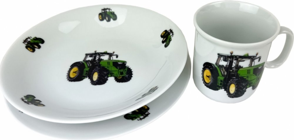Dětská jídelní sada 3dílná dekor TRAKTOR NOVÝ ZELENÝ. Vhodná jako krásný a praktický dárek pro malé děti i pro stravování dětí v jídelnách mateřských škol.