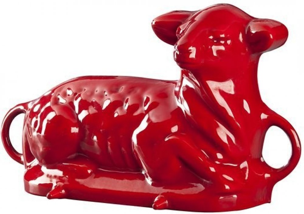 Český smalt Gourmetina Litinová smaltovaná pečící forma Beránek Leopold Stínově červená 37x21x8,5 cm