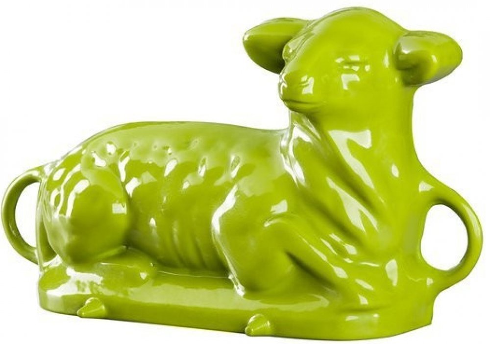 Český smalt Gourmetina Litinová smaltovaná pečící forma Beránek Leopold Trávnikově zelená 37x21x8,5 cm