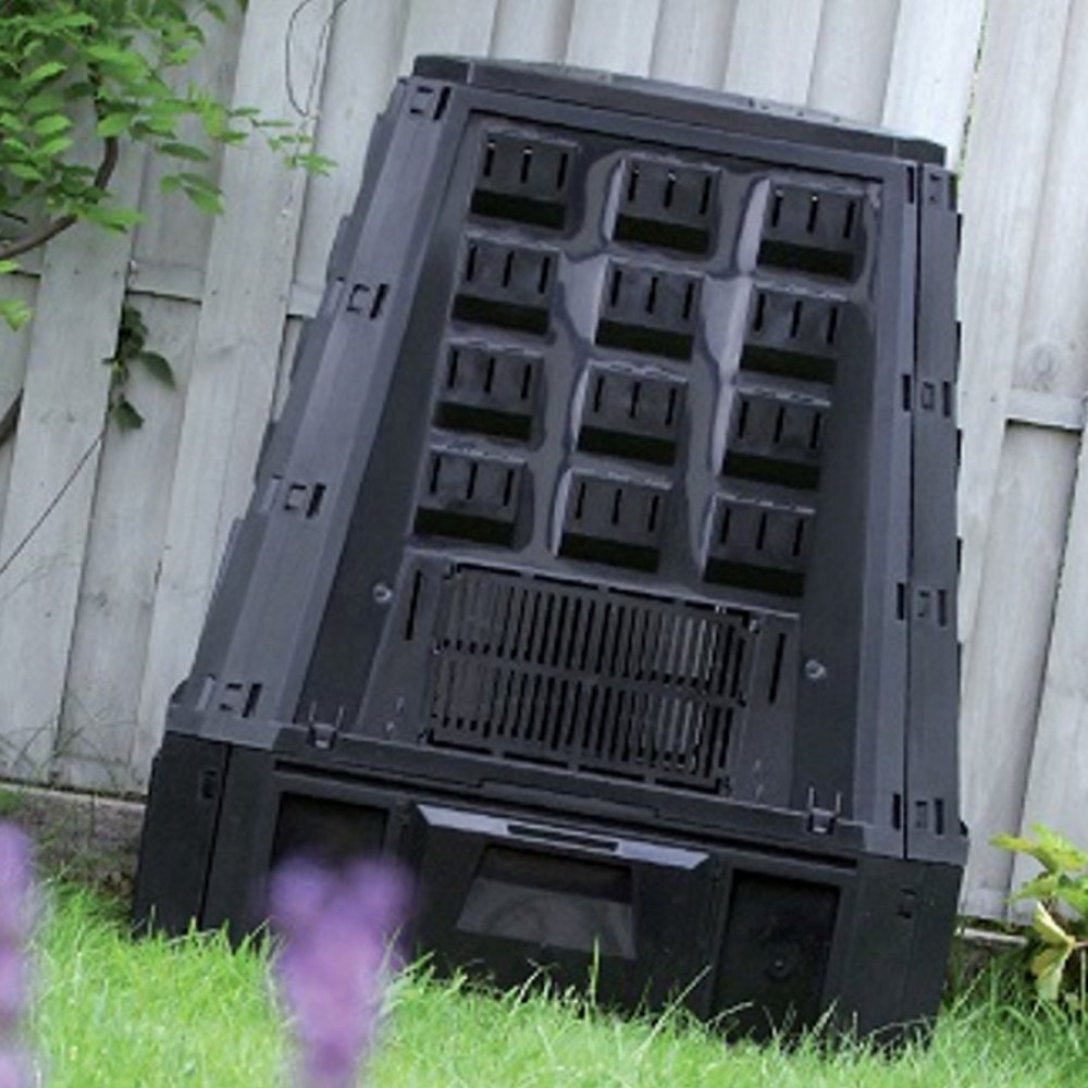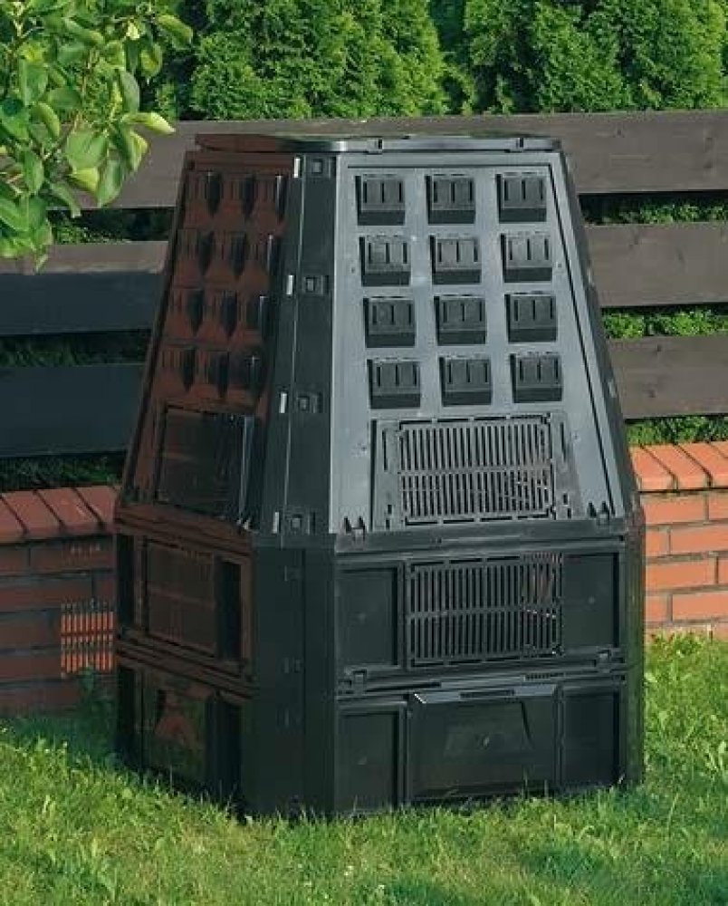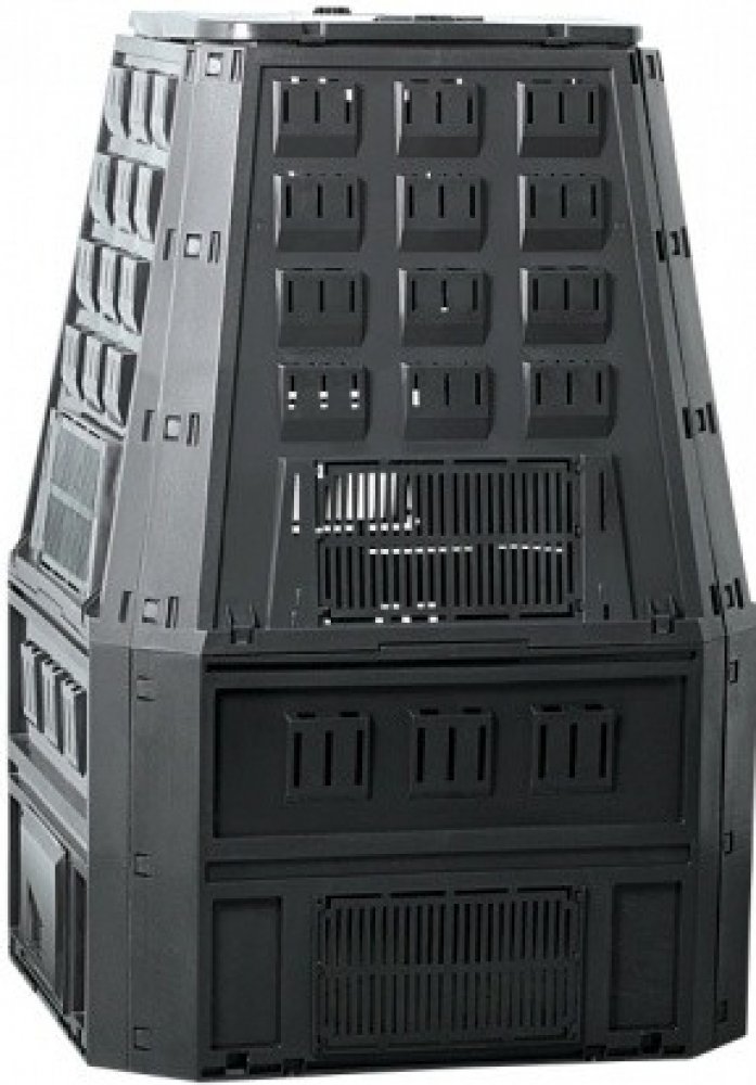 * Kompostér je vyroben z recyklovatelného plastu, který je odolný vůči atmosférickým vlivům. Kompostéry v zahradě zaberou minimální prostor. Kompostér nemá dno a přímý styk s půdou tak umožňuje volný přístup červům, kteří se podílejí na procesu dekompozice a na tvorbě plnohodnotného, na živiny bohatého humusu. V dolní části kompostéru je otvor pro vybírání kompostu.
