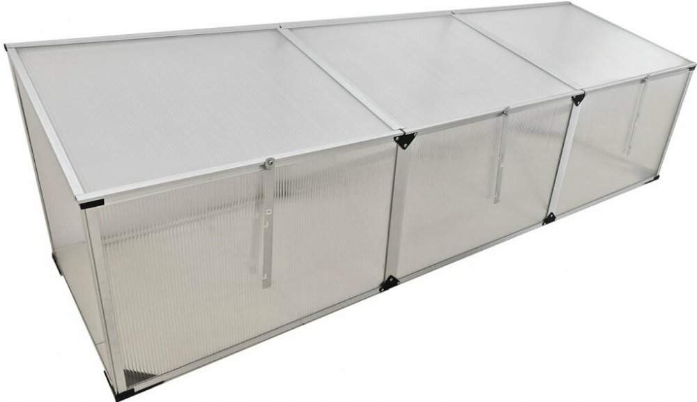 Polykarbonátové pařeniště. Jeho výhodami jsou především lehká konstrukce, skvělá tepelná akumulace nebo UV ochrana. Má tři větrací otvory s podpěrou, hliníkový rám. Je určené k předpěstování sadby, pěstování některých druhů zeleniny, nebo založení r