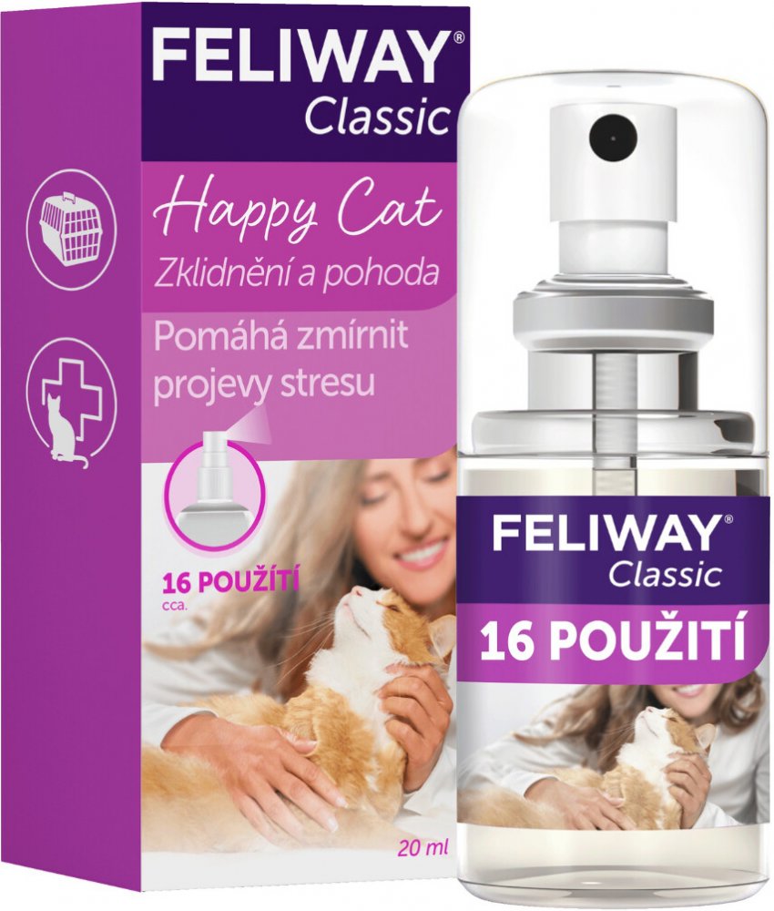FELIWAY® Travel sprej je zklidňující až antistresový feromonový přípravek pro kočky. Při cestování autem nebo návštěvě veterináře stačí nastříkat přípravek přímo na přepravku či košík vaší kočky.