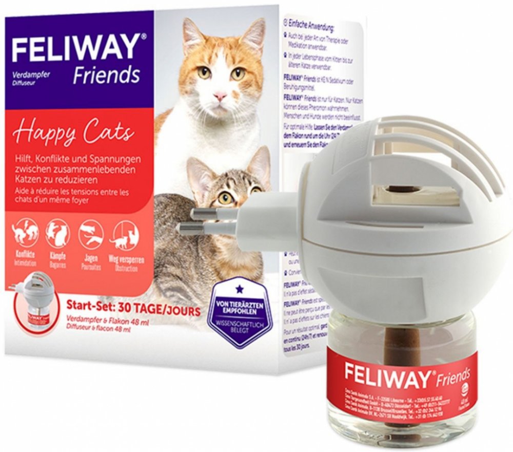 FELIWAY imituje kočičí obličejový feromon, který navozuje stav bezpečí a pohody, má uklidňující až antistresový vliv.