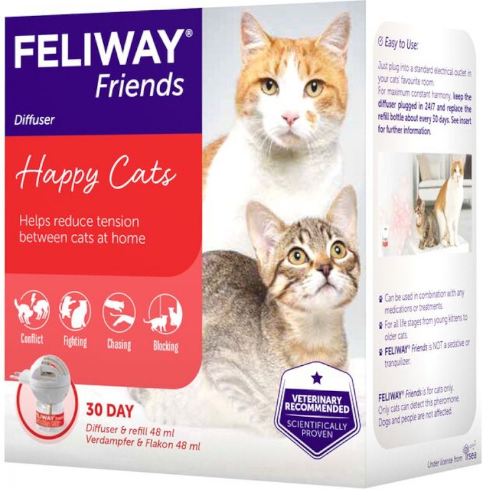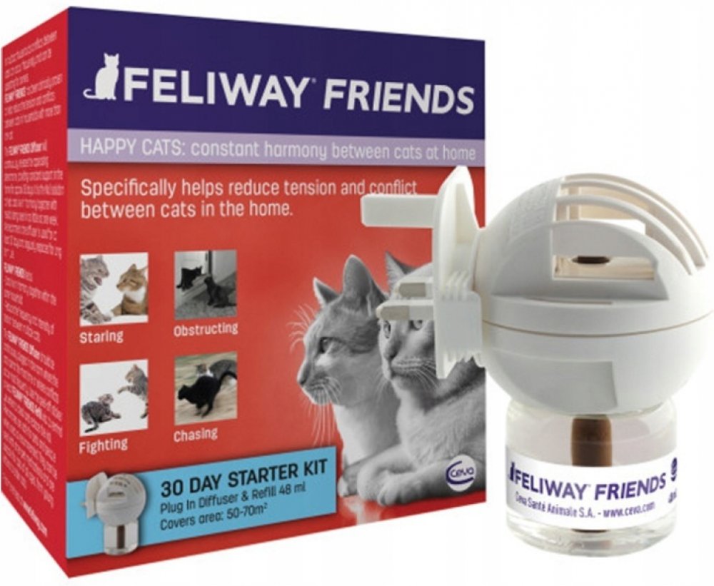 - Napodobuje kočičí tvářový feromon, který zabezpečuje kočce stav pohody a klidu