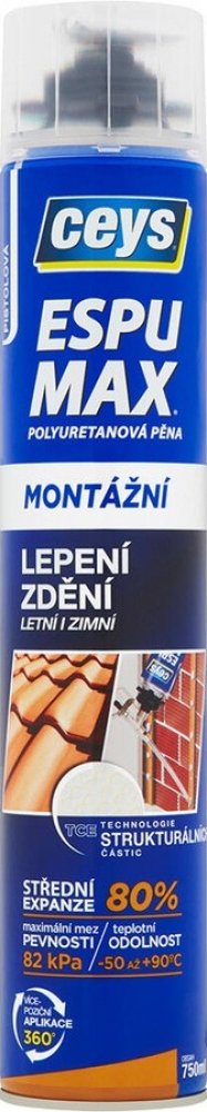 Montážní pěna se střední expanzí (80 %) pro všeobecné lepení ve stavebnictví na různé druhy materiálů a vyvinutá i pro připevnění střešních tašek s maximální zárukou bezpečnosti.