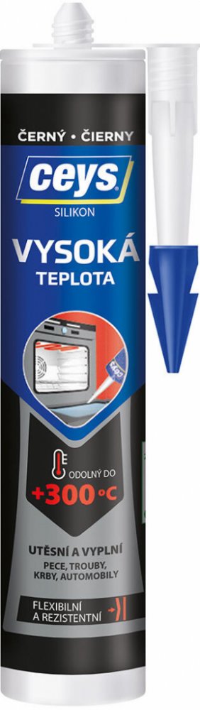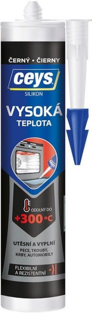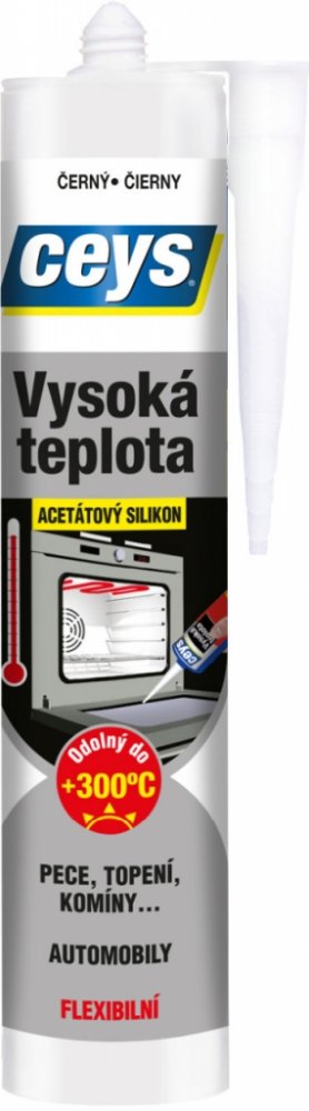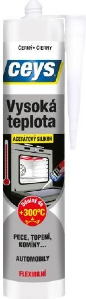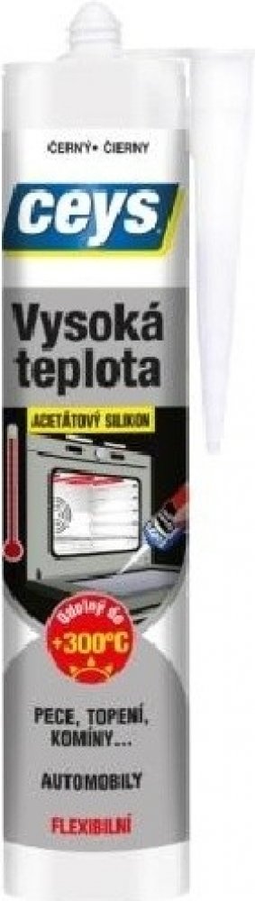 CEYS silikon vysoká teplota je acetátový černý silikon bez rozpouštědel speciálně určený pro vysoké teploty od -70°C do +250°C, s limitem až +300°C. Je vysoce chemicky odolný a trvale pružný.