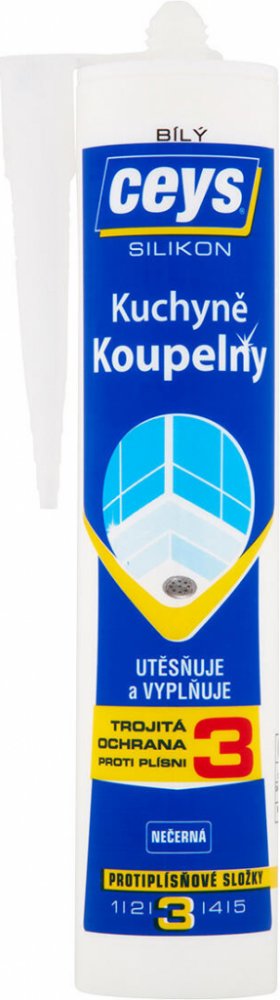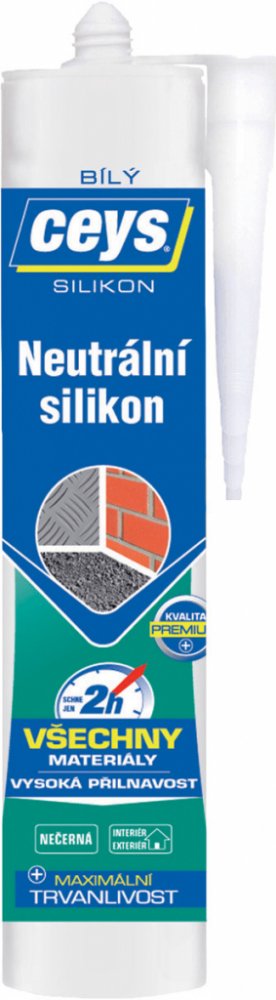 SILIKONCEYS NEUTRÁL je neutrální silikonový tmel, vhodný na veškeré běžné stavební, konstrukční i dilatační spáry. Je speciálně určen pro tmelení a lepení zrcadel, aniž by poškozoval jejich lak. Přilne na beton, cement, obklady, dřevo, kovy a plasty, a to mezi sebou i s jinými materiály. Díky své neutrálnosti nepoškozuje materiály jako je mramor nebo přírodní kámen. Odolává vlhkosti. Je vždy pružný. Netmavne ani se nesmrští. 100% SILIKON. Bez rozpouštědel. RADY CEYS: Pokud je zrcadlo typ “staré zlato” nebo jeho imitace, doporučuje se udělat zkoušku na málo viditelném místě, aby se zjistilo, zda se nepoškodí lakování. NÁVOD NA POUŽITÍ: Důkladně očistit a osušit spojovaného plochy. Uříznout konec otvoru kartuše a našroubovat aplikační špičku seříznutou v požadovaném místě (šikmý řez). Vložit kartuši do aplikační pistole. Vymáčknout provázek silikonu a uhladit prstem namočeným v mýdlové vodě. Otřít zbytek silikonu hadrem. Po zaschnutí může být přebytek odstraněn nožíkem. MATERIÁLY: univerzální použití - ideální také na zrcadla TEPLOTNÍ ODOLNOST: nbsp; nbsp; - 50 nbsp; - nbsp; + 150°C BEZPEČNÉ NAKLÁDÁNÍ: S2 Uchovávejte mimo dosah dětí.