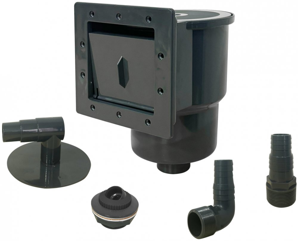 univerzální skimmer pro téměř všechny bazény s ocelovou stěnou na trhu s otvorem ve stěně 148 x 140 mm. Skimmer je připojitelný na bazénové hadice o rozměru 32 nebo 38 mm. Součástí balení skimmeru jsou vratná tryska (pro otvor 60 mm a připojení bazénové hadice 32/38 mm), sběrný košík, plovoucí klapka proti návratu nečistot do bazénu a víko s adaptérem pro připojení ručních a poloautomatických vysavačů.