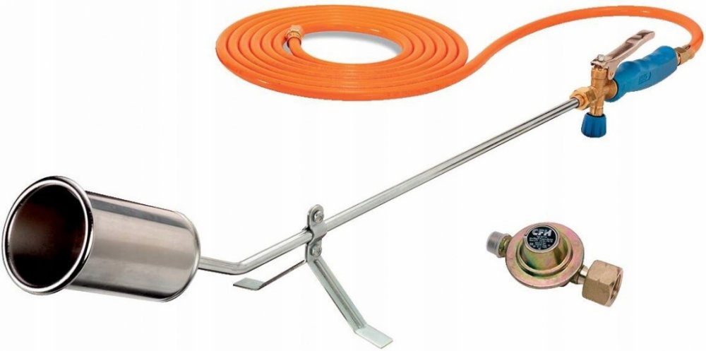 CFH GV900 je profesionální hořák na plevel vybavený velkou hlavou hořáku. Tento hořák na plevel GV900 je dodáván s 5 metrů dlouhou plynovou hadicí. Tato plynová hadice je vhodná pro velké plynové lahve o hmotnosti 5, 10 nebo 33 kg. Díky tomu nejste závislí na menších plynových lahvích. CFH GV900 je naprosto pro extrémně dlouhou životnost. Je plně pochromovaná a vybavená ergonomickou rukojetí. V blízkosti rukojeti se nachází kulatý otočný knoflík, kterým lze nastavit tlak plynu. Po uvolnění stiskací rukojeti máte k dispozici pouze pilotní světlo. Stisknutím stiskací rukojeti získá hořák (nastavený) velký pracovní plamen. Vypořádejte se s veškerým nežádoucím plevelem s tímto spolehlivým hořákem CFH GV900 Technické údaje: - Značka: CFH - Typ: Plynový hořák na plevel - Teplota plamene: Nastavitelná až do 1600 °C - Zapalování: - Tlak plynu / velikost plamene: Nastavitelný - Požadovaný typ plynu: Propan a/nebo butan - Materiál kopí: Pochromované - Materiál rukojeti: Plast - Materiál hlavy hořáku: Pochromovaná - Délka: 90 cm. Hmotnost hořáku: 750 g - Hmotnost plynové hadice: 715 g Vybavení: - Piezoelektrické zapalování: Ne - Ergonomická rukojeť: Ano - Regulační ventil pro zvyšování a snižování plamene: Ano - Páčka pro úsporu energie: Ano - Držák výpusti: Ano - Hlava hořáku o průměru 6,5 cm. Dodáváno s: - Regulátor tlaku: Ano, 2,5 baru - Plynová hadice: Ano, 5 metrů - Návod k použití. Potřebná plynová láhev: Tento hořák na trávu je třeba připojit k velké plynové láhvi. Ty jsou k dostání mimo jiné na čerpacích stanicích. Jakou plynovou láhev potřebuji a jak ji připojit? Informace naleznete po kliknutí na ZDE. Plamenový hořák CFH GV 900 Tento hořák splňuje požadavky na výkonný a snadno použitelný plynový hořák. Na rozdíl od mnoha jiných výrobků je součástí dodávky hořáku GV 900 již vhodný regulátor tlaku. Součástí dodávky je také 5 m dlouhá plynová hadice. Tato poměrně dlouhá hadice zajišťuje velký akční rádius. Lze ji použít i k zapálení větších ploch, například teras, aniž by bylo nutné při každém kroku přemisťovat plynovou láhev.VlastnostiIdeální pro zahradnické práce, jako je odstraňování plevele, svařování obložení jezírek a střešních fólií, podpalování dřeva nebo zapalování grilů na dřevěné uhlí S úspornou rukojetí plamene pro úsporu energie Včetně plynové hadice (5 m), regulátoru tlaku (pevný) a odkládacího stojanu Plamenový hořák lze připojit k 5 KG, 11 KG nebo 33 KG lahvím na propan/butan Rukojeť lze odšroubovat Technické údajePřipojení spalovacího zařízení: 3/8" levý závit Pracovní teplota: >1800 °C Průměr hlavy hořáku: 60 mm Délka hadice: 5 m Regulátor tlaku: 2,5 bar Rozsah dodávky1x hořák CFH GV 900, včetně plynové hadice, regulátoru tlaku a stojanu pro skladování.Modrá gastronádoba není součástí dodávky! Jedná se o příklad použití. Plamenový hořák GV 900 včetně regulátoru tlakuHořák Ø 60 mm s úspornou rukojetí pro úsporu energie Rukojeť a hořák lze odšroubovat vč. hadice 5 m, 9,53 mm (3/8") s podpěrným stojanem Teplota plamene: 1800 °Cvč. regulátoru tlaku 2,5 baru TRIUSO ST1000 - Vypalovač plamene - 52084ST1000 - Přístroj na úpravu plamene od firmy TRIUSO, s číslem výrobku: 52084 a EAN: 4001845520841 Popis: s úspornou rukojetí plamene pro úsporu energie, podpěrný stojan, pro standardní propanbutanové lahve o hmotnosti 5, 11 a 33 kg, regulátor tlaku: nezbytný pro propanbutanové lahve (např. č. zboží 52114) Hořák: ø 60 mm, odšroubovatelný Rukojeť: odšroubovatelná Hadice: 5 m, 3/8" : testováno Plamenné zařízení CFH GV 900 včetně 5 m plynové hadice 3/8"/ regulátoru tlaku 2,5 baru Hořák ø 60 mms úspornou rukojetí plamene pro úsporu energieRukojeť lze odšroubovatvčetně 5 m hadice 3/8", regulátoru tlaku a podpěrného stojanu Střešní hořák na střešní lepenku CFH GV900 s 5m hadicí a redukcí CFH 52084 Složení sady: CFH GV900 Střešní hořák s 5m hadicí Redukce 5m hadice Vysoce výkonný hořák se používá k ohřevu, čištění plamenem, svařování fólií, dehtování, izolaci střech, sušení betonu a biologickému hubení plevele. Lze jej připojit k 5 kg, 11 kg a 33 kg plynovým lahvím pomocí příslušné redukce CFH 52114, která je součástí sady. Technické údaje: Typ plynu: propan Bod vzplanutí: 1800 o C Stručný popis zařízení / zamýšleného použití: Pokud jde o důkladné odstranění plevele nebo mechu, jsou plamenové postřikovače CFH první volbou. Plamenové postřikovače CFH také usnadňují práci s asfaltem a dehtem a vysoušení betonu. Optimálně svařují obložení jezírek a střešní izolace. V zimě jsou chodníky rychle a efektivně zbaveny ledu. Zamrzlé svody a žlaby jsou rozmrazeny během chvilky. Rozsah dodávky: Odmrazovací stojan