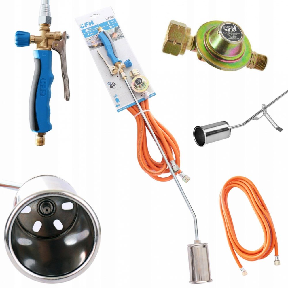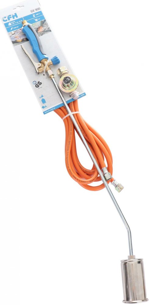 CFH GV900 je profesionální hořák na plevel vybavený velkou hlavou hořáku. Tento hořák na plevel GV900 je dodáván s 5 metrů dlouhou plynovou hadicí. Tato plynová hadice je vhodná pro velké plynové lahve o hmotnosti 5, 10 nebo 33 kg. Díky tomu nejste závislí na menších plynových lahvích. CFH GV900 je naprosto pro extrémně dlouhou životnost. Je plně pochromovaná a vybavená ergonomickou rukojetí. V bl...