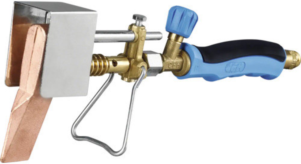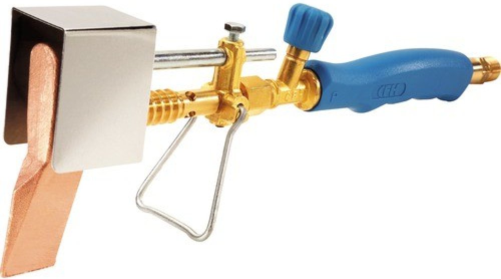 medena plynova pajecka, idealni pro mekke pajeni okapovych zlabu medenych plechu a pozinkovanych ocelovych plechu az do tloustky 1 mm.kladivkove pajedlo je opatreno 350 g medenou pajeci hlavou, kterou lze demontovat po povoleni sroubu, takze pristroj lze pouzivat jako normalni pajeci horak.prakticky stojanek pro odkladani.pajecka ma ochranu proti vetru a otocnou bezpecnostni pripojku 3/8".pracovni teplota je 730 °c.