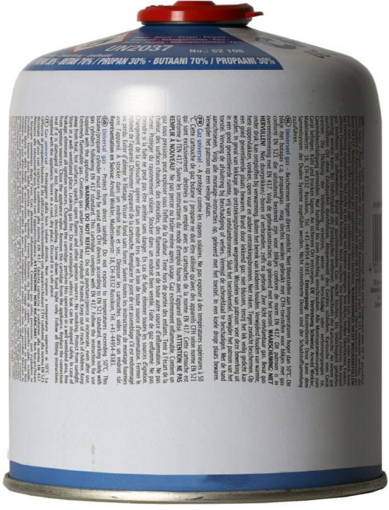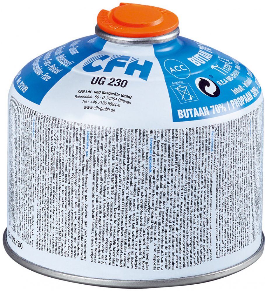 Nádoba se stlačeným směsným plynem 70%  butan / 30% propan dle normy EN 417. Směs plynu zajišťuje optimální výkon i v náročných klimatických podmínkách. Vhodné pro hořáky / vařiče dle normy EN 521.