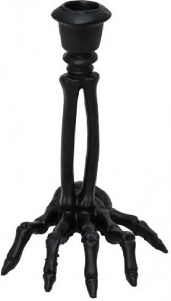 Černý svícen na stůl v podobě černé kostry ruky