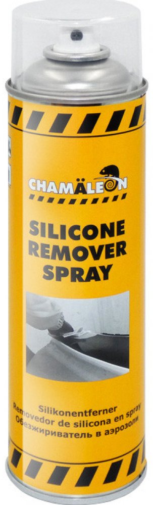 Chamäleon odstraňovač silikonu sprej 500 ml jednoduchá, časově nenáročná aplikace důkladné odstranění silikonu, mastnoty, oleje, vosku, nečistot, dehtu, zbytky lepidla atd. mírné, neagresivní rozpouštědlo zlepšuje přilnavost pro další nátěry mimořádně šetří čas odsolovací funkce