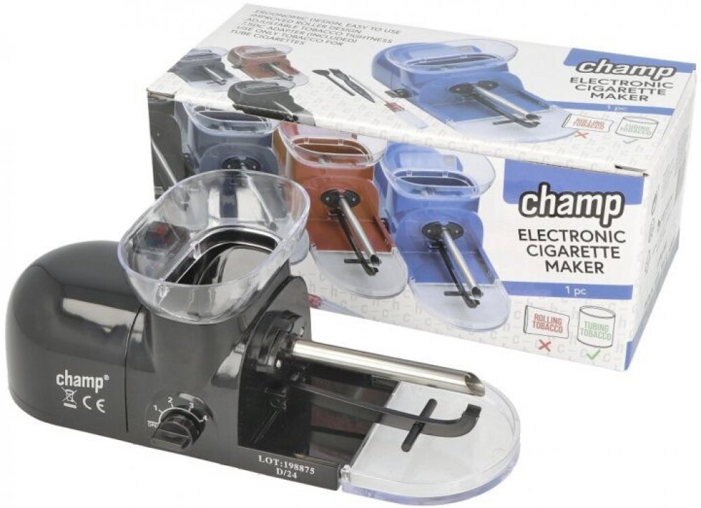 Plnička cigaretových dutinek od značky Champ je nejlevnější variantou elektrických plniček. Plnička je naprosto spolehlivá a od našich zákazníků se nám dostává pouze kladných hodnocení.