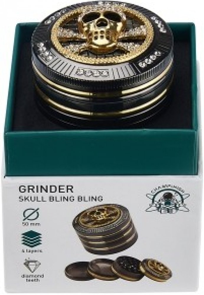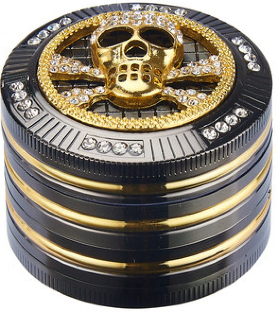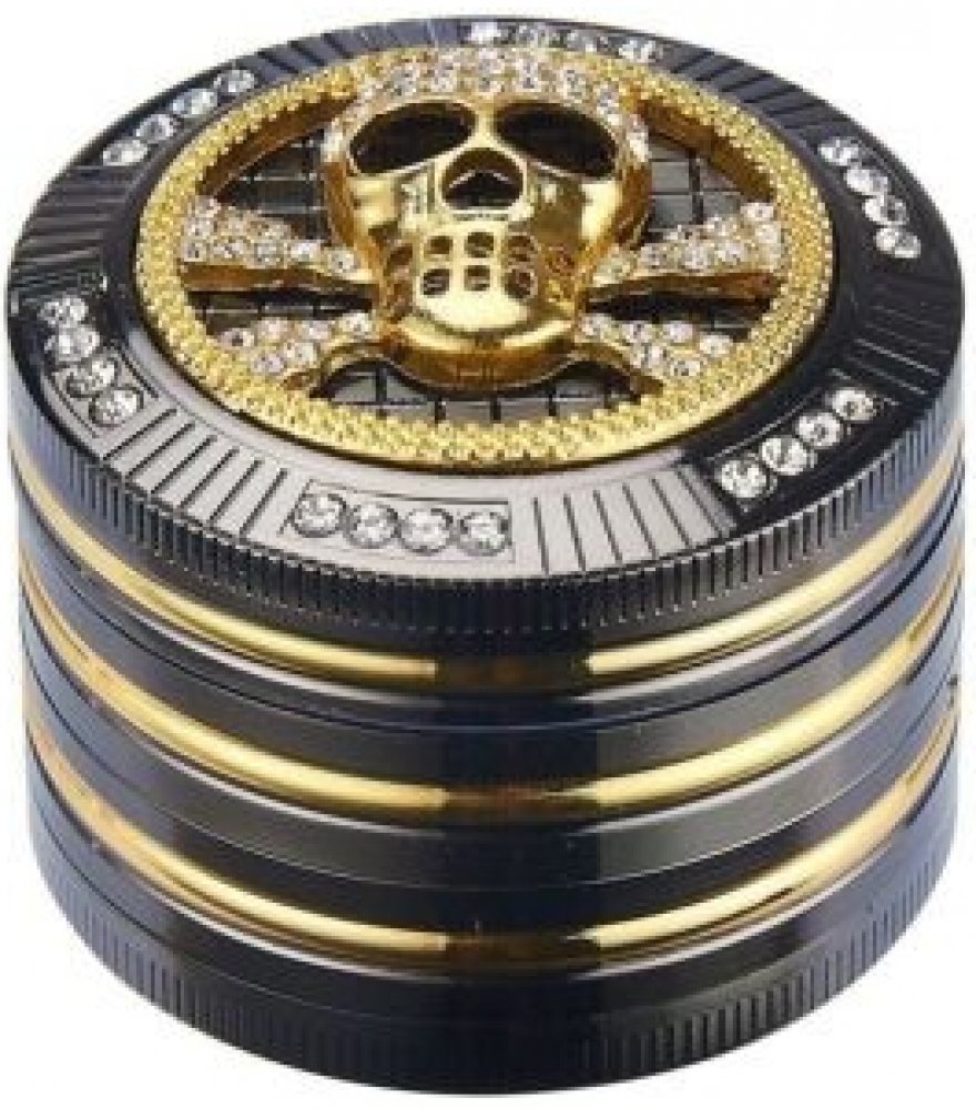 Atraktivní kovový drtič na tabák Champ High Skull. Kvalitní čtyřdílná drtička se závitem, sítkem a zásobníkem na tabák je precizně vyrobena CNC technologií. Hladký lesklý povrch je v gunmetalovém provedení s kombinací zlatých prvků. Magneticky uzavíratelné víčko drtičky je zdobené velkou 3D lebkou s broušenými kamínky. Ostře broušené zuby ve tvarů diamantů velmi jemně nadrtí vaší směs do potřebné ...