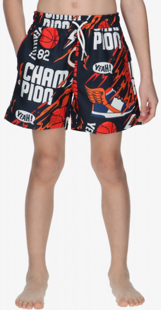 Champion Basket Inspired jsou dětské plavecké šortky pro mladší kluky Připravte se na letní dobrodružství s našimi úžasnými plaveckými šortkami! Díky elastickému pasu a stahovací šňůrce vám dokonale padnou a snadno se přizpůsobí, takže můžete pohodlně vyrazit na pláž nebo k bazénu, kdykoli budete chtít. Barevná grafika inspirovaná basketbalem dodává šortkám estetický vzhled a umožňuje snadné sladě...