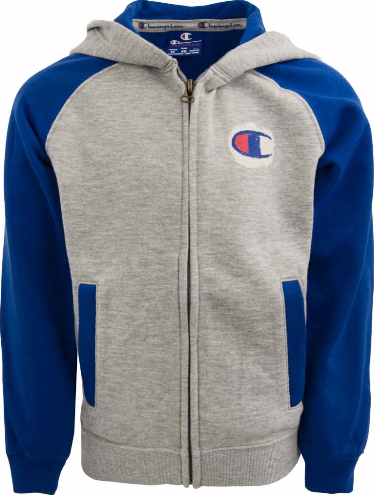 Dětská mikina Champion Zip Hoodie Grey/Blue. Moderní a pohodlná mikina s kapucí. Směs bavlny a polyesteru. Šedá barva s modrými detaily. Ideální pro každodenní nošení. Dětská mikina Champion Zip Hoodie Grey/Blue je pohodlný a stylový kousek pro každodenní nošení. Mikina je vyrobena z měkké a odolné směsi bavlny a polyesteru, která zaručuje pohodlí po celý den. Šedá barva s modrými detaily dodává mikině moderní vzhled. Praktický zip umožňuje snadné oblékání a svlékání a zároveň slouží k regulaci teploty. Dvě boční kapsy poskytují dostatek prostoru pro uložení drobností. Elastické manžety a spodní lem zajišťují, že mikina dobře padne a drží tvar. Nechybí ani logo Champion na hrudi, které podtrhuje kvalitu a styl této mikiny. Mikina Champion Zip Hoodie Grey/Blue je ideální pro volný čas, sport i běžné nošení. Snadno ji zkombinujete s džínami, tepláky i dalšími oděvy.Materiál: 60% bavlna, 40% polyesterStřih: RegularBarva: Šedá s modrými detaily