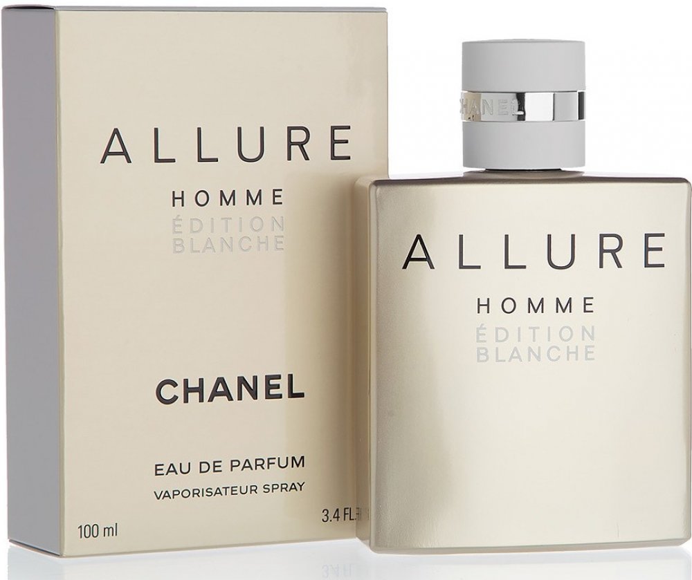 Chanel 100 ml pánské parfémované vody Allure Homme Édition Blanche 2014 z Francie madagaskarský růžový pepř, sicilský citron bergamot mošus, vetiver, santal, ambra, vanilka, cedr jarní Chanel klasické 353 g