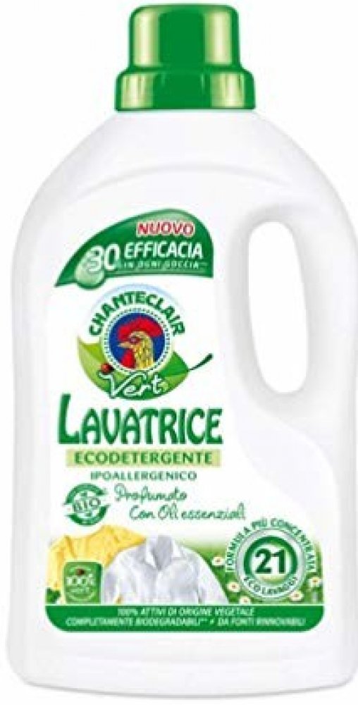 Koncentrovaný tekutý prací prostředek Chante Clair Vert Ecodetergente Ipoallergenico zaručuje dokonalou čistotu a odstranění skvrn i při nízkých teplotách. Obohacený o rostlinný extrakt z listů Aloe Vera, který je známý svými změkčujícími a zvlhčujícími vlastnostmi. Hypoalergenní a dermatologicky testován na citlivou pokožku. Jeho složení obsahuje přírodní povrchově aktivní látky rostlinného původ...
