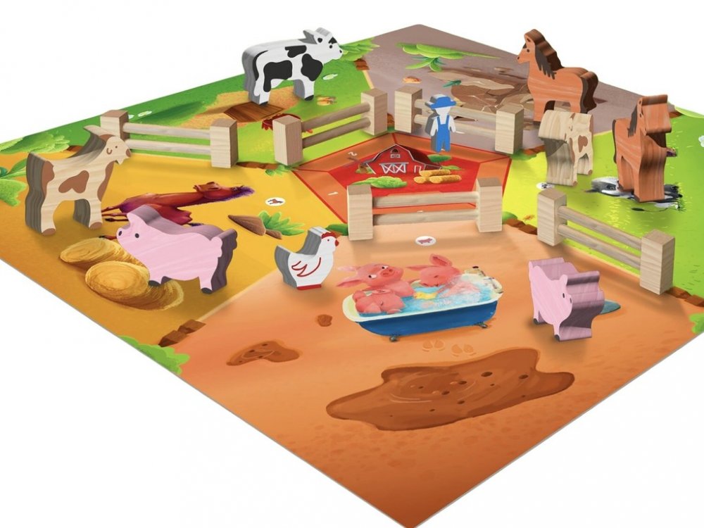 Na farmě zavládl chaos a zvířata se rozutekla dovšech stran. Teď je potřeba zahnat je zpět do jejichvýběhů. Hru lze hrát dvěma způsoby: MůžeteSPOLUPRACOVAT (kooperativní varianta hry) –postarejte se o to, aby se všechna zvířátka dostalatam, kam patří. Ale pozor! Všechna se do výběhůmusí vrátit ještě před setměním! Pokud se vám topovede, znamená to společné vítězství. Nebomůžete SOUPEŘIT ...