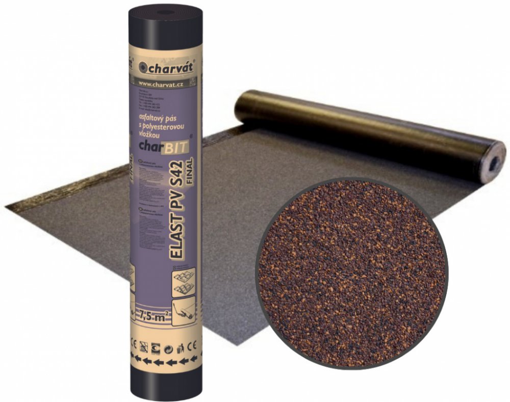 Charvát CharBit Elast PV S42 Final Asfaltový pás 1 x 7,5 m 4,5 mm hnědý mix