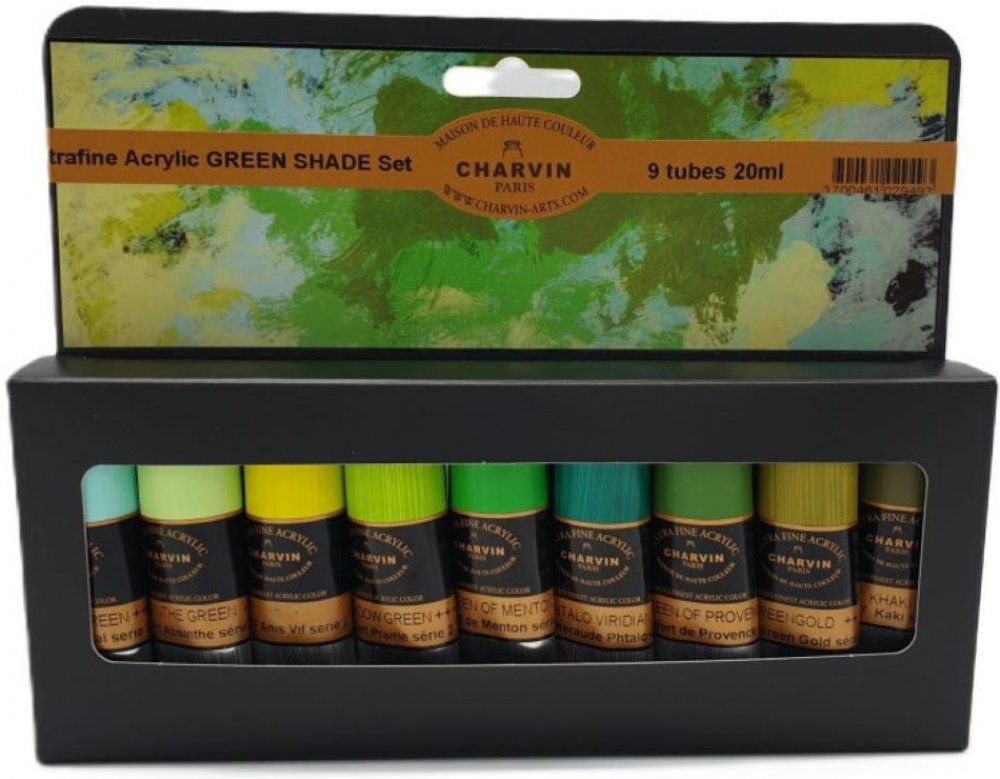 Charvin Paris Akrylové barvy Extra Fine Green Shade sada 9x20ml...