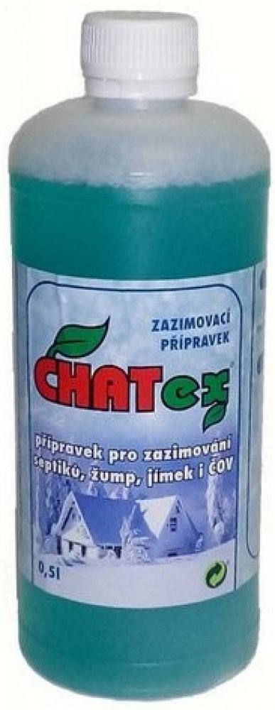 CHATex je přípravek určen pro zimní ošetření septiků, žump, jímek s přerušovaným provozem. Funguje i při nízkých zimních teplotách, kdy rozkládá tuhý organický odpad, usazeniny, kaly, odstraňuje zápach. Je ideální na chaty, chalupy a rekreační objekty. Balení 0,5 litru vystačí na 2 až 4m odpadní vody.Dávkování: celé balení nadávkujte přes umyvadlo, WC, sprchový kout, dřez, apod… Pro požadovaný efekt zalijte vodou, aby se přípravek dostal až do zařízení V případě, že přípravek dávkujete přímo do zařízení, je vhodné ho promíchat s JEHO obsahem. přípravek neaplikujte přímo na suchou krustu usazenin při aplikaci by mělo být zařízení naplněno minimálně do 1/3 objemu.