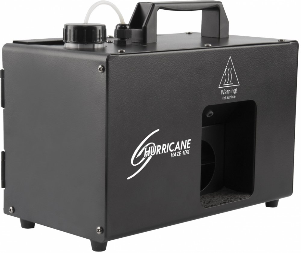 Hurricane Haze 1DX vytváří lehký opar, který zvyšuje světelnou show. Snadno nastavte adresu DMX, nebo samostatný provoz pomocí digitálního displeje. Rychlost výstupu mlhy může být nastavena v samostatném režimu pomocí digitálního displeje bez požadovaného ovladače. Vestavěný snímač pomáhá prodloužit životnost hazeru automatickým zastavením čerpadla, když je hladina kapaliny nízká.
