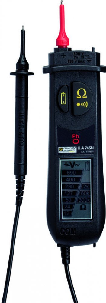 Zkoušečka napětí a průchodnosti C.A 745 N zobrazuje na LCD displej naměřené napětí ve formě sloupcového grafu se 7 úrovní. Kompaktní přístroj dokonale padne do ruky.