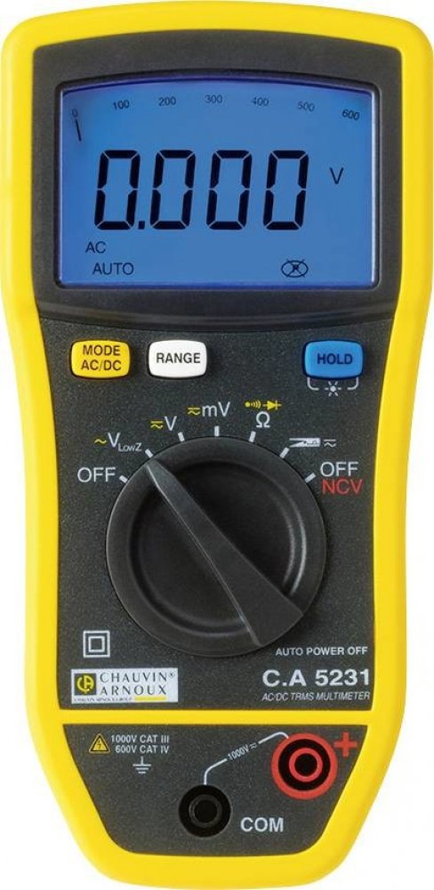 Digitální multimetr vhodný pro elektrotechniky, techniky topných a klimatizačních systémů, servisní techniky. Díky plášti jsou přístroje odolné proti nárazu. IEC 61010·600 V CAT IV·1000 V, CAT III 2 měřicí kabely se zkušebními hroty·1 alkalická baterie 9 V·Klešťový transformátor AC 100 A Multimetr Chauvin Arnoux C. A 5231 + kleště mini 03 od výrobce Chauvin Arnoux v kategorii Nářadí|Měřicí technik...