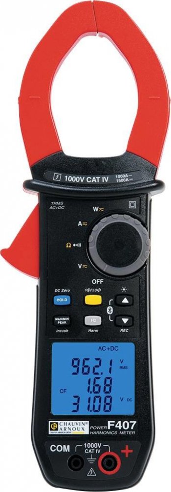 Digitální klešťový TRMS multimetr Chauvin Arnoux F407 umožňuje přesné měření efektivní hodnoty, rozběhových proudů, výkonů a harmonickou analýzu se záznamem měření a bezdrátovým přenosem.